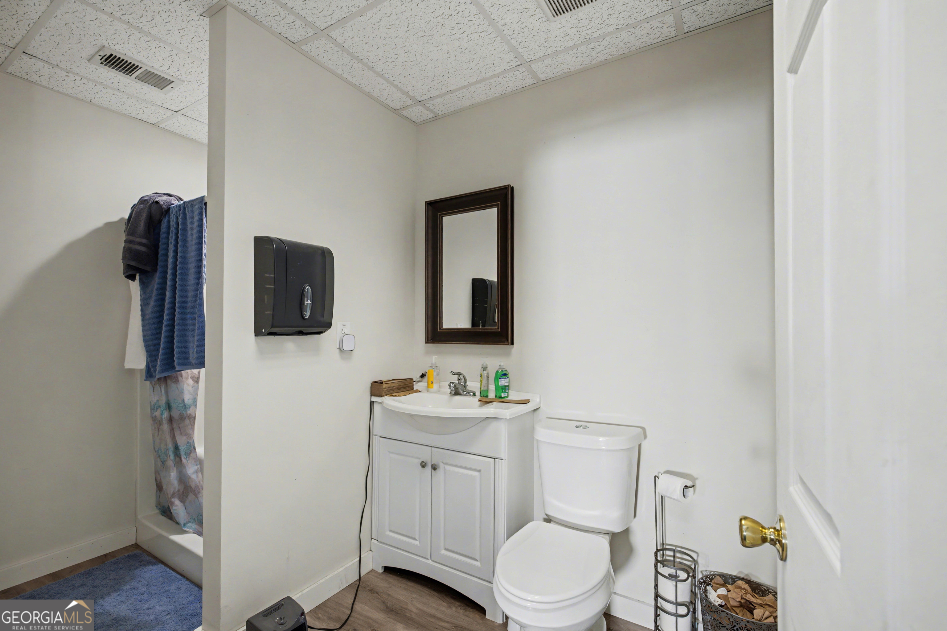 Unique property full of possibility and opportunity! Located in Palmetto just off busy Hwy 29/Roosevelt Hwy but on a large, private & wooded lot hidden from view. Building is approximately 60' x 100' for a total of 6,000 sq ft on a 3+acre lot. One large room/bay has 25' high ceilings and an overhead door. Suspended/drop ceilings in most of the building. Polished concrete floors. Plenty of outside storage. Zoned C-1 Neighborhood Commercial in the City of Palmetto. Shown by appointment only.